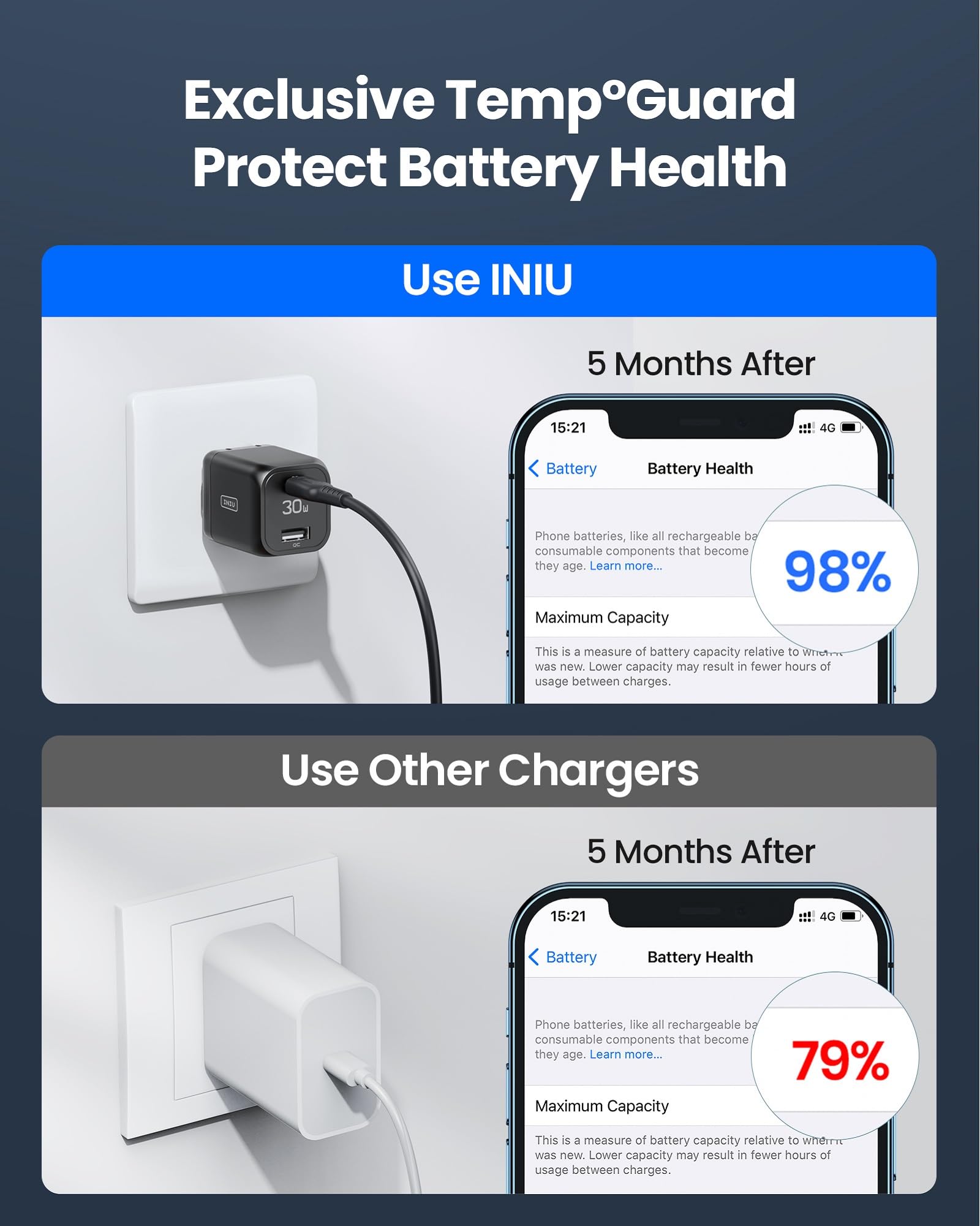 - [From INIU — the SAFE Fast Charge Pro] Experience the safest charging with over 38 million global users. At INIU, we use only high-quality materials, what you have is more than a usb c charger block, but also a security guarantee! So we do have the confidence to provide an industry-leading 3-Year iNiu Care.