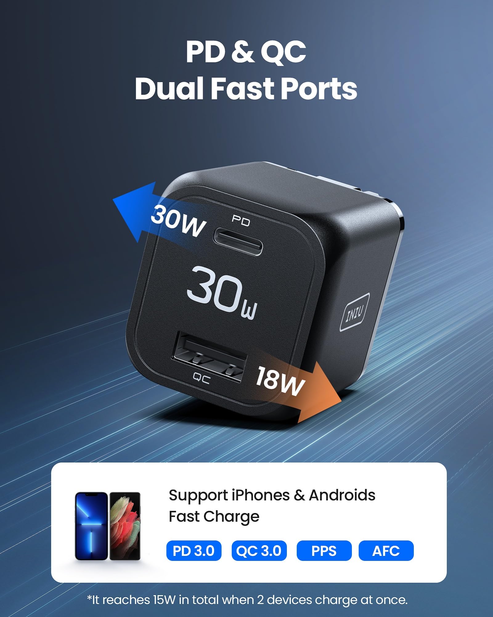 - [What You Get] 30W(Max) 2-Port Wall Charger*1, User Manual*1, industry-leading 3-Year iNiu Care, plus technical support.