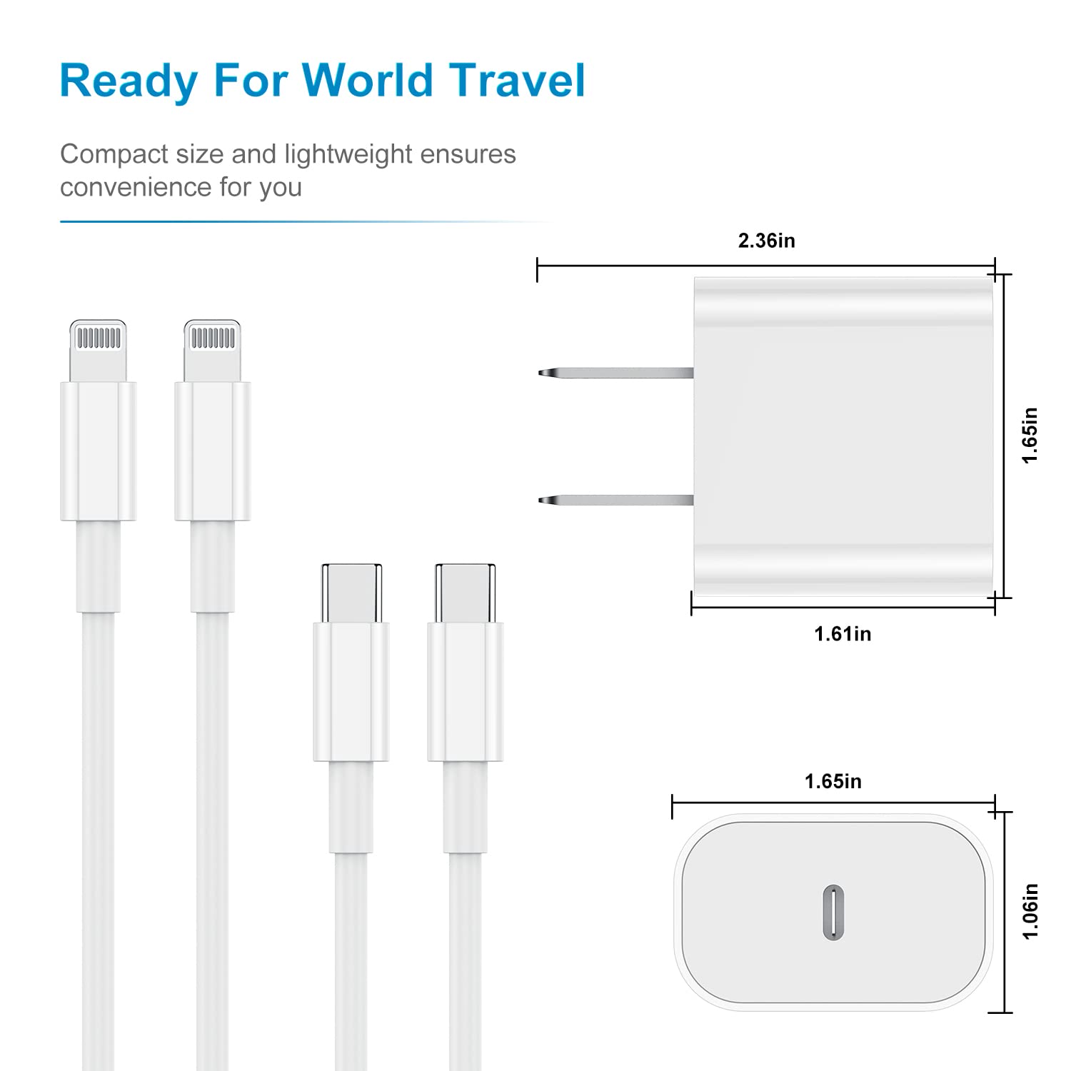 What You Get: 1 Pack 20W USB-C iPhone charger and 1 Pack 6ft USB C to Lightning Fast Charging Cable . 1-Years worry-free refund and replacement. If you have any quetions, don't hesitate to contact us! We promise to solve your problems within 24 Hours!