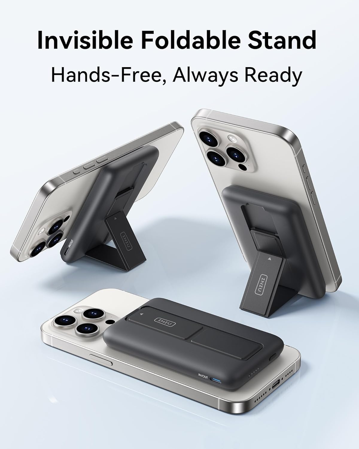 - Convenient Built-In Stand: Tired of holding your phone while watching movies or making video calls? Our power bank comes with a foldable stand to support your device during use, whether you're on the road or at home.
