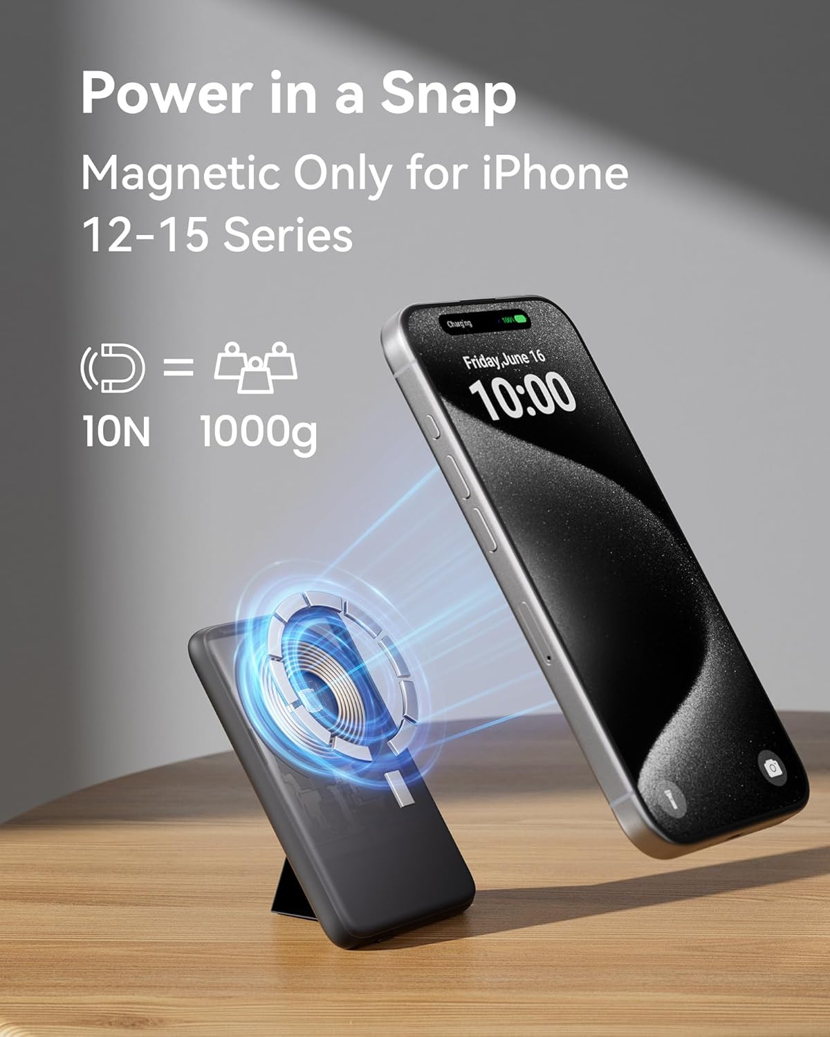 - Born for iPhone 15/14/13/12 Series: Bid farewell to tangled cables and bulky charging. Our magnetic wireless power bank is tailored for your iPhone's MagSafe technology, ensuring a seamless, one-handed attachment and high-speed charging.【Note: Magnetic charging function is ONLY compatible with iPhone 15/14/13/12 series.】