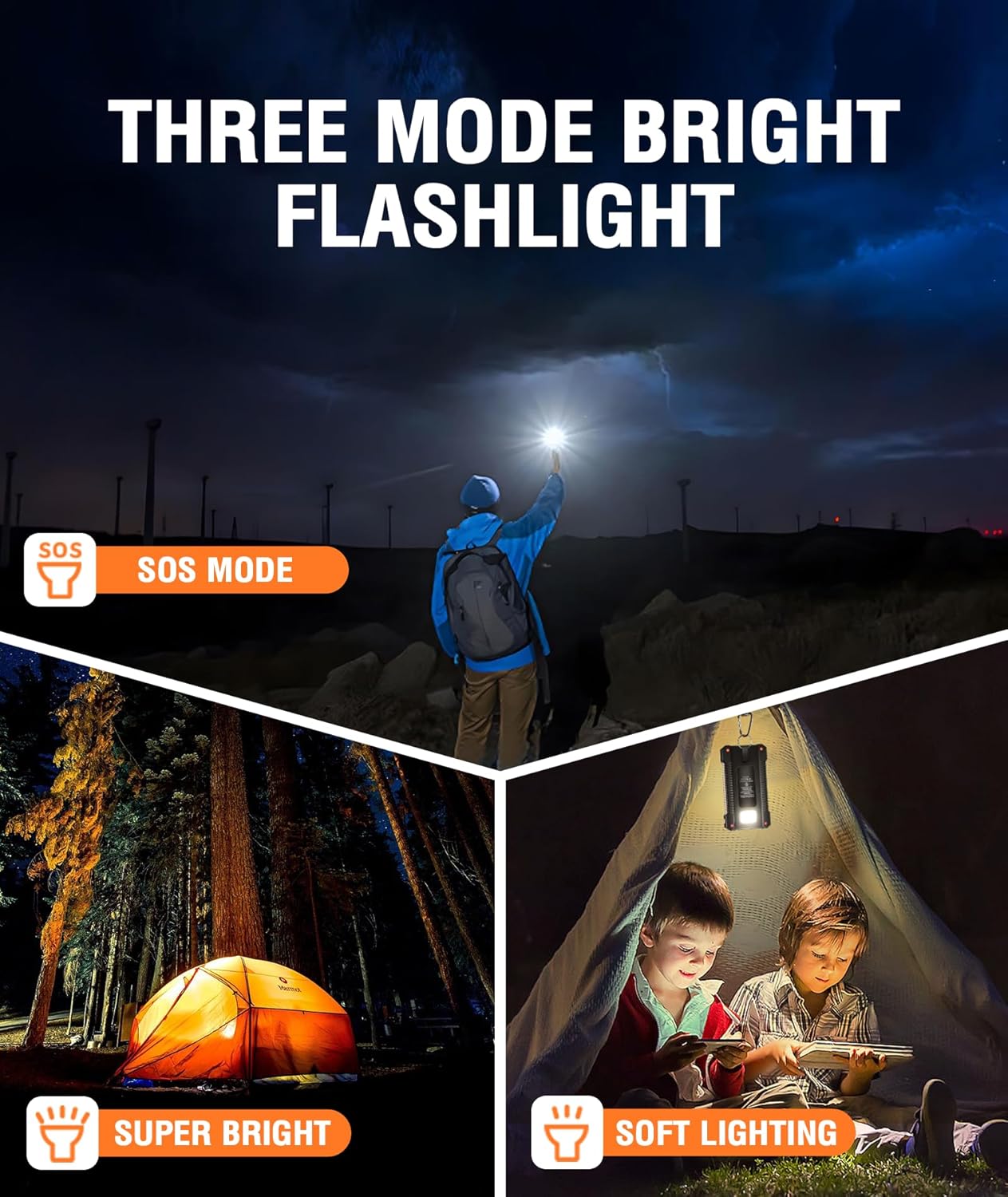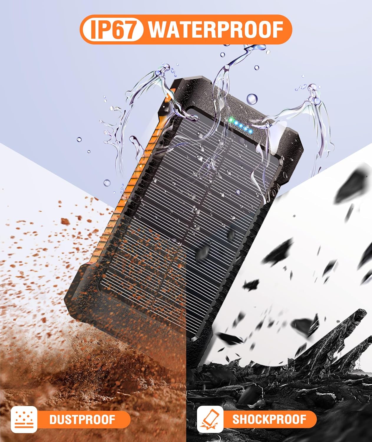 - 【Three Modes Flashlight】: Solar power bank with stable, SOS and flashing light function, the built-in torch can provide up to 120 hours of light in emergencies.