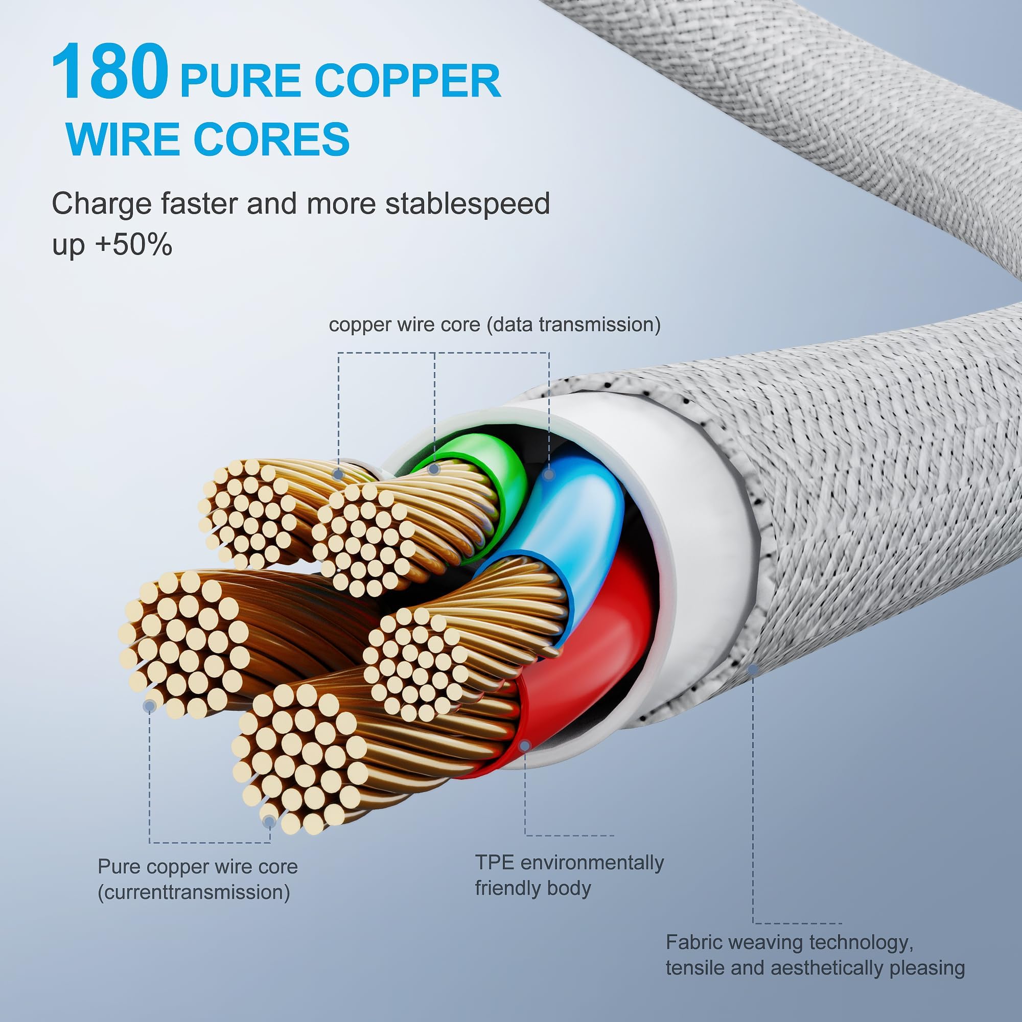 Data transfer up to 480 Mbps. Power output up to 3Amp. 10000+ times bending.